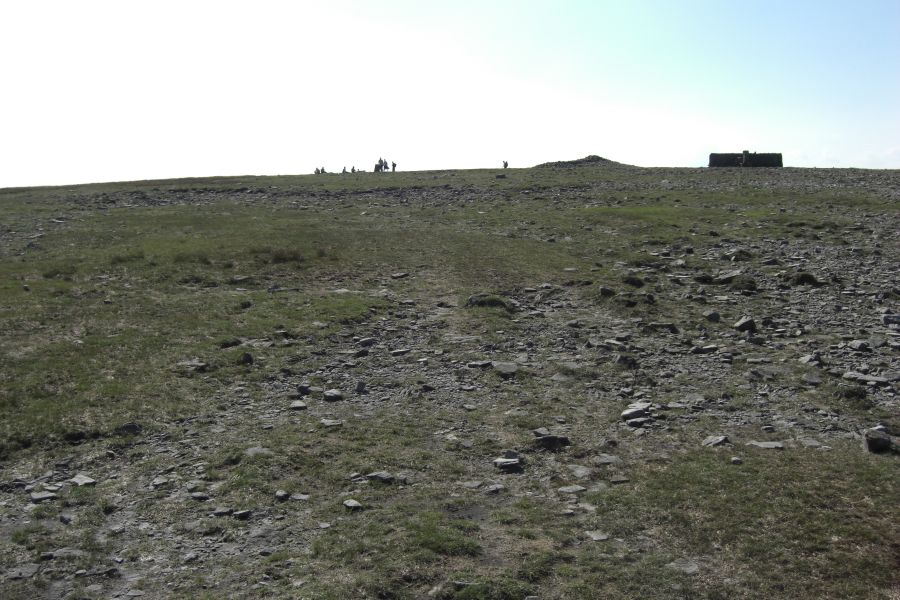 The flat top moonscape of Ingleborough with the summit ahead