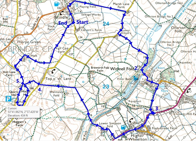 A 5 mile walk, extended to 5 and a half if you take in the Hough Hill Trig Point and Denham Quarry, Definitely worth it in my opinion. Start in the village of Brindle, roadside Parking available on Water St. which is accessed off Sandy lane between The Cavendish Arms and The Church. Postcode PR6 8NG
