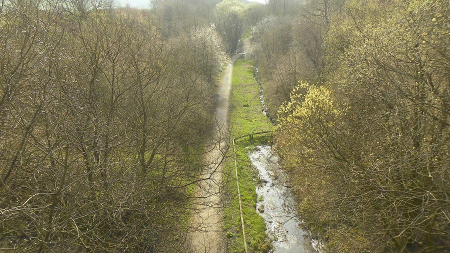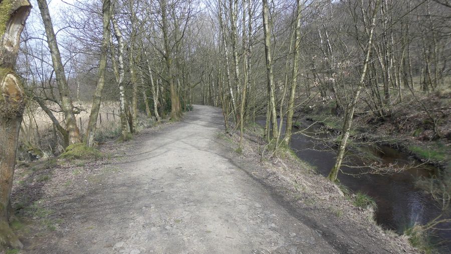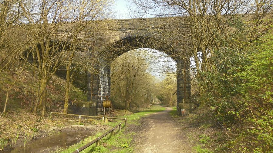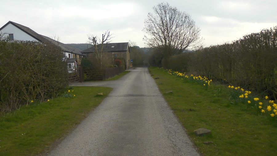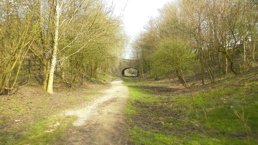 railway line footpath to Abbey Village, The route then goes over Pike