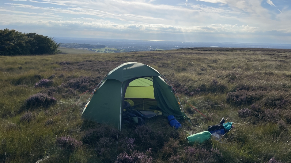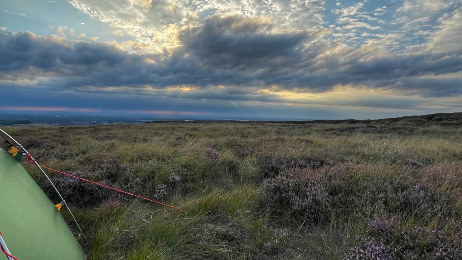 An August camp on the Moors above Drinkwaters Farm ruin on the approach to Great Hill, First decent days weather since early July ![]() Approaching Coppice Stile on the ascent up Great Hill ![]() And a new sign explaining what used to be here ![]() Tent up and looking out over Chorley to the Ribble Estuary ![]() Looking towards Great Hill ![]() Preapring Tea, Garlic Sausage, Peppers and onions, I forgot the rice but had a cheese slice so melted that in.....Winner ![]() Sun going down, but the hoped for sunset didn't materialise ![]() Tea is served !! ![]() Looking towards Winter Hill and a pint of Stella !! ![]() Sky looking quite moody now, it chucked it down later !!! ![]() Messy looking camp but very comfortable ![]() 5 Star accomadation ![]() The Naturehike Cloud Peak 2 glowing in the dark. Winter Hill TV mast lit up in the background ![]() The sign explaing about Drinkwaters Farm Ruin Back to top of page
