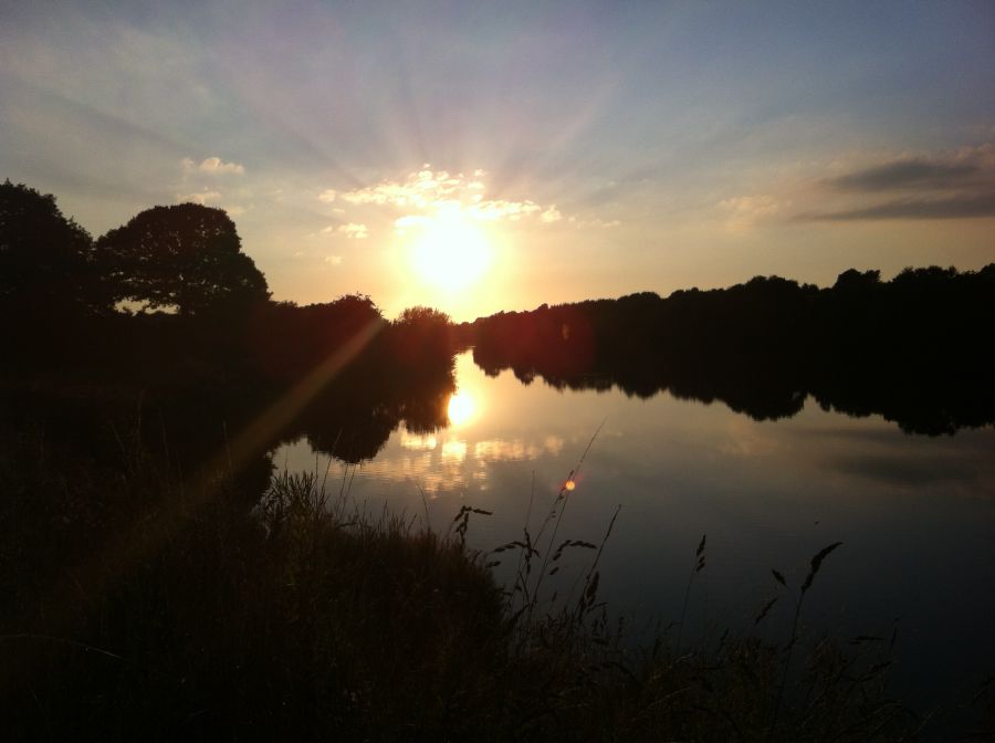 The sun setting over the reservoir