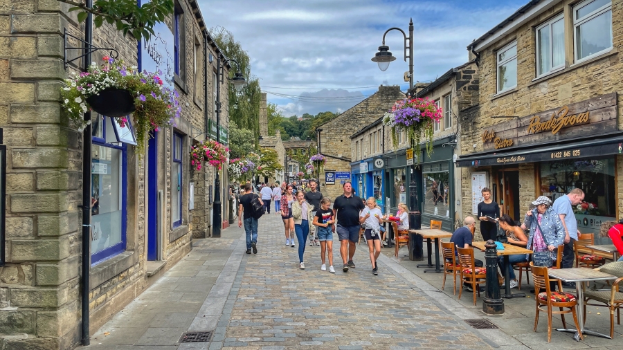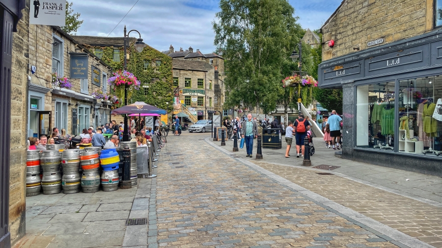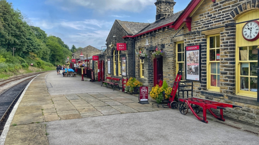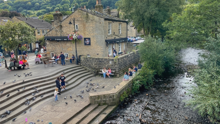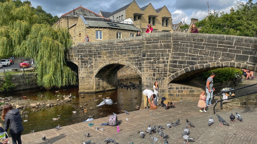 A walk through Bronte Country from Oxenhope Railway Station and finsihing with an afternoon stroll around the superb town of Hebden Bridge ![]() Oxenhope Railway Station, Superb, like walking back into the 1950's ![]() Looking down on the village of Oxenhope as we climb on to the Moors ![]() Striding along the Bronte Way ![]() Still on The Bronte Way ![]() More of the same ![]() And now a choice of routes ![]() Yorkshire ![]() So, into Hebden Bridge for a coffee, an ice cream and a stroll around ![]() Hebden Water... and pigeons ![]() Bustling and busy ![]() The town was packed with people ![]() ![]() Lovely place for an afternoon visit Back to top of page