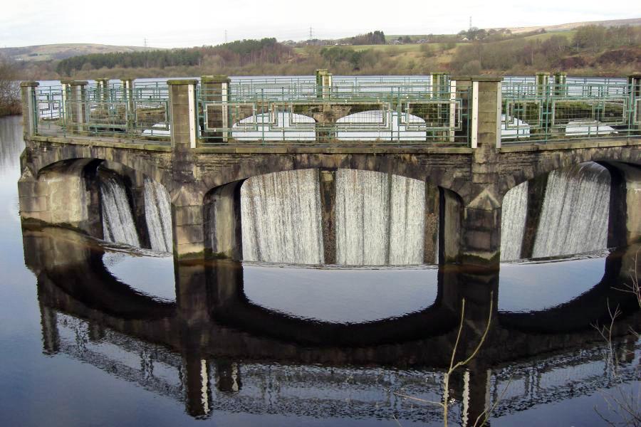 The Reservoir outfall, where the water leaves the reservoir for the treatment plant in the valley below.